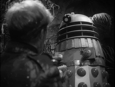 A few more seconds and the Dalek search squad will reduce this area to a pile of rubble!